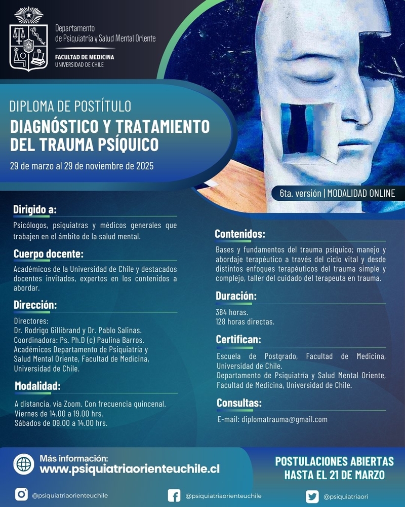 | Descripción | Diploma Diagnóstico y Tratamiento del Trauma Psíquico, 6ta versión 2025 | |
