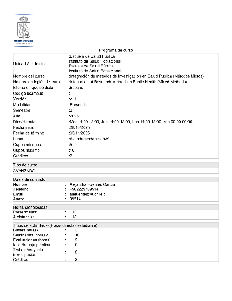CAIMISP-1 Integración de métodos de investigación en Salud Pública (Métodos Mixtos) 2025, Segundo Semestre