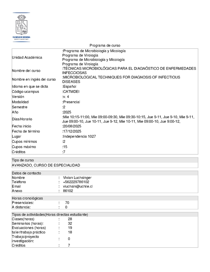 CATMDEI-1 Técnicas Microbiológicas para el Diagnóstico de Enfermedades Infecciosas 2025, Segundo Semestre