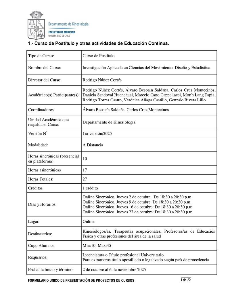 ECFMKIIACMDE01-1 Investigación Aplicada en Ciencias del Movimiento: Diseño y Estadística 2025, Segundo Semestre