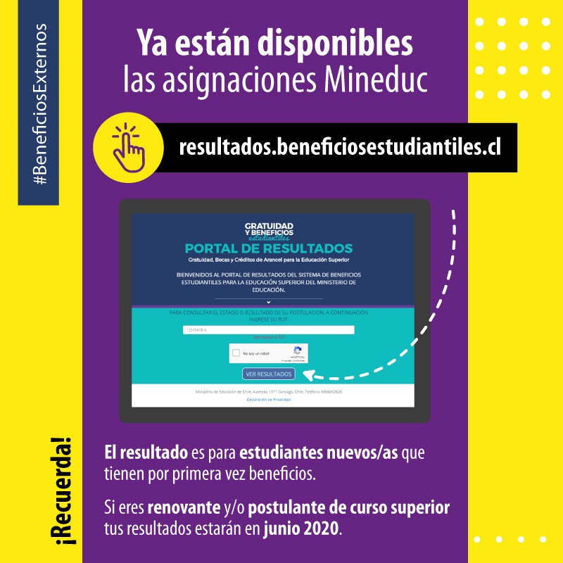 Se informa a los estudiantes que registran año de ingreso 2020 , que ya se encuentran disponibles los resultados de Ayudas Estudiantiles MINEDUC.