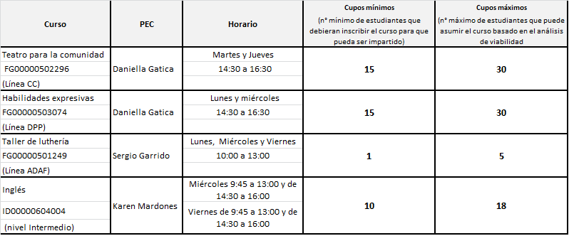 Inicio de clases martes 26 de diciembre CFG e Inglés miércoles 27 de diciembre, finalizando el 26 de enero