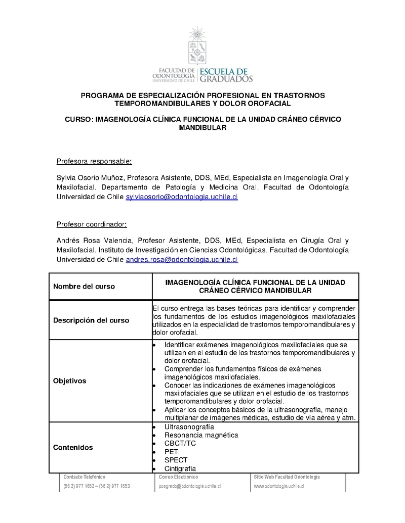 TTMDOF0009-1 Imagenología Clínica Funcional de Unidad Cráneo Cérvico Mandibular 2023, Segundo Semestre