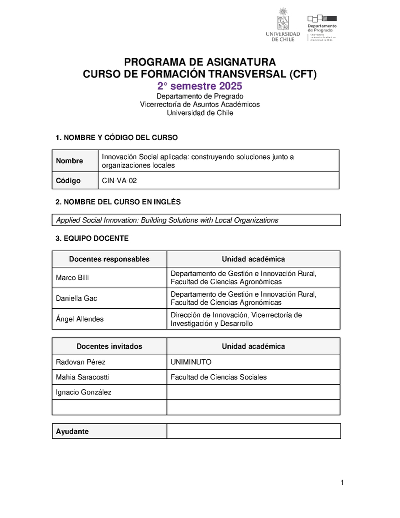 CIN-VA-02-1 Innovación Social aplicada: construyendo soluciones junto a organizaciones locales 2025, Segundo Semestre