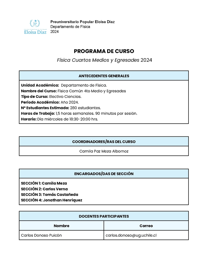 | Descripción | Curso de preparación PAES Ciencias Físicas, dirigido a estudiantes de 4º medio y egresadxs. Departamento de Física Preuniversitario Popular Eloísa Díaz. Instagram: @preuped.fisica |