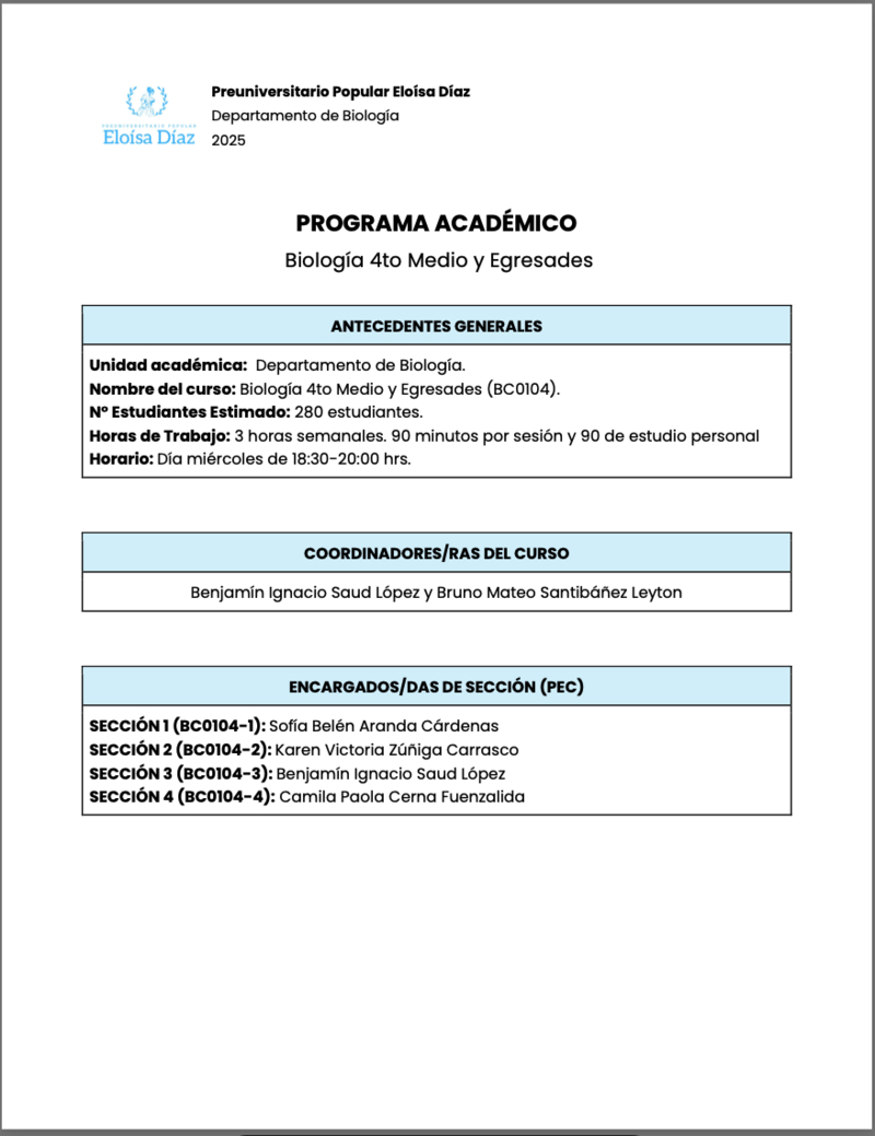 Descripción | Departamento de Biología Preuniversitario Popular Eloísa Díaz |