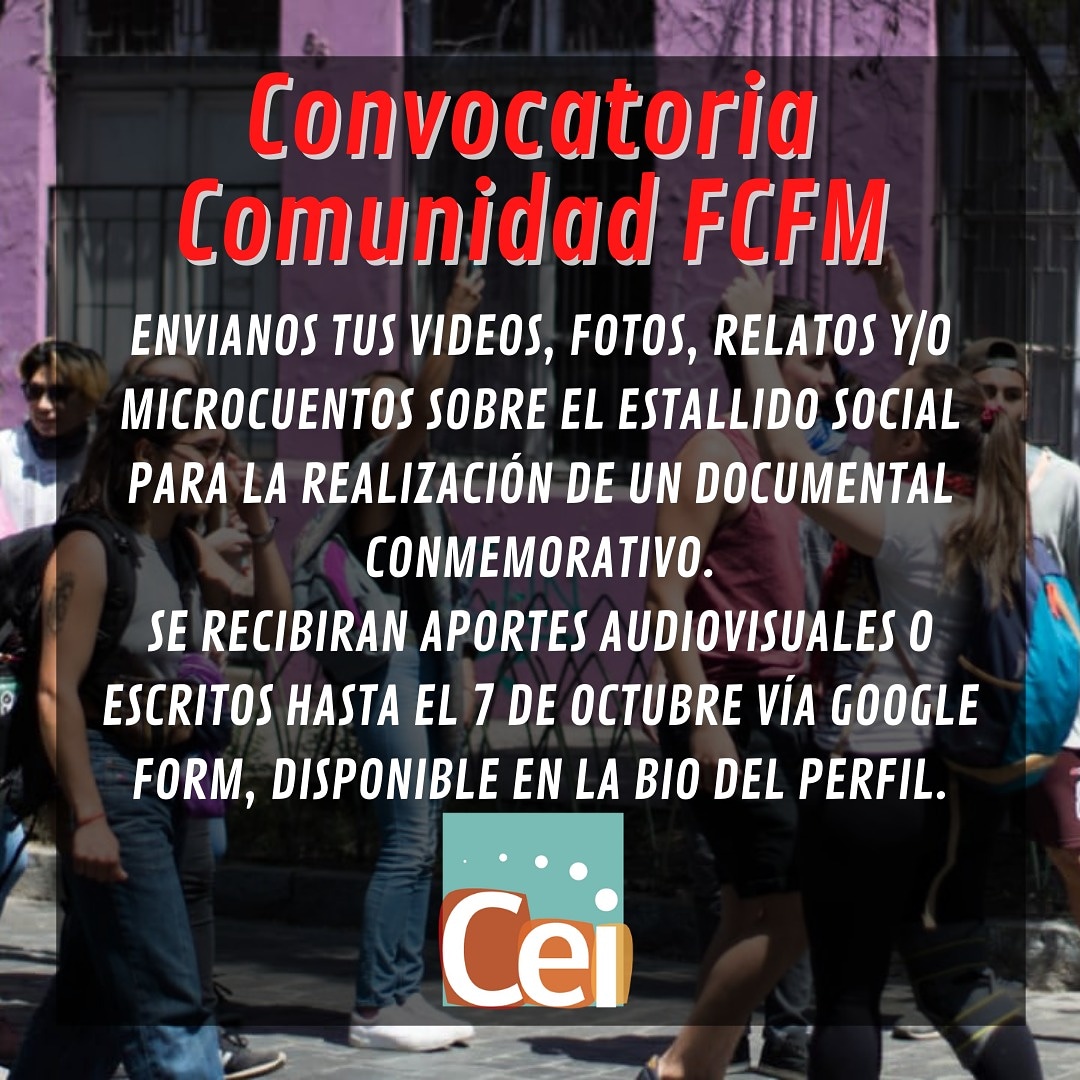 Además les compartimos la convocatoria del CEI en contexto del 18 de Octubre: