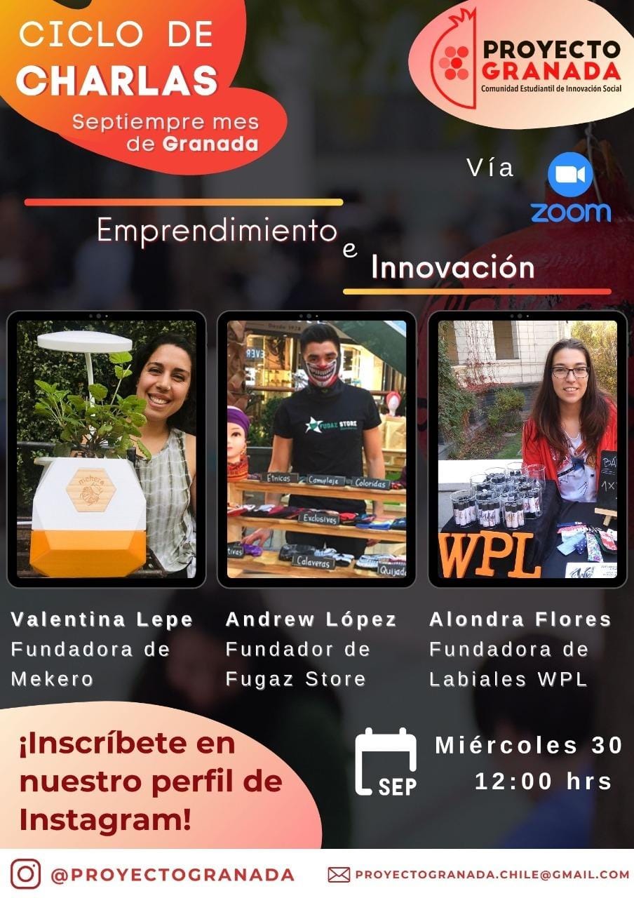 Además, les contamos que mañana a las 12 hrs es la última charla del ciclo de emprendimiento e innovación de Proyecto Granada. Esta vez expondrán: