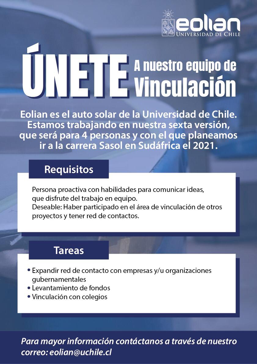 Por otro lado, compartimos la invitación de Eolian a formar parte del equipo, revisa para saber los detalles y para más información puedes escribir a eolian@uchile.cl.