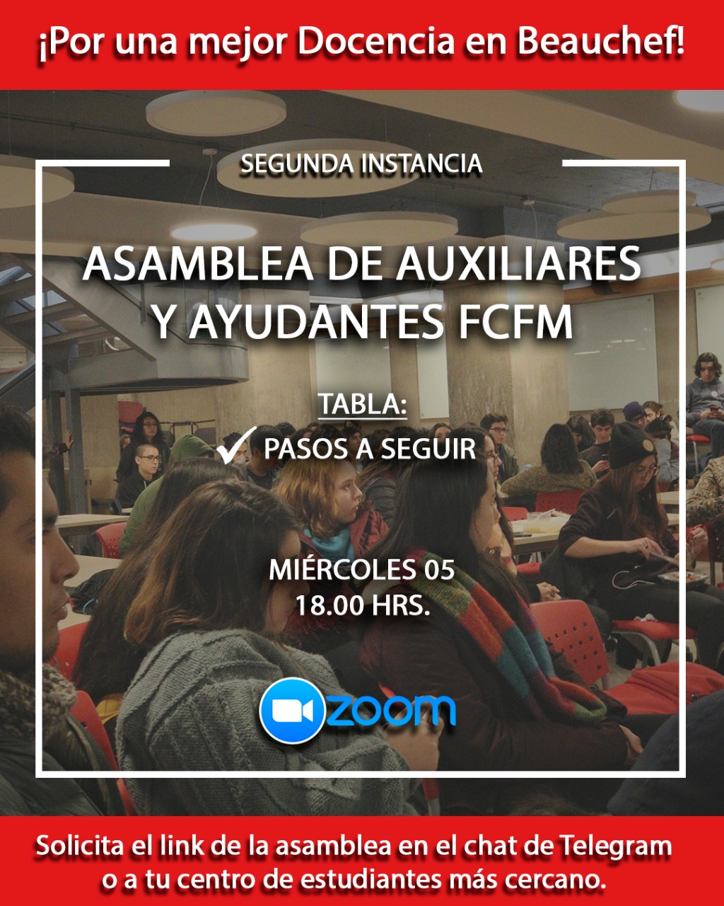 El día de mañana a las 18hrs será la segunda asamblea de auxiliares y ayudantes a través de la plataforma Zoom.