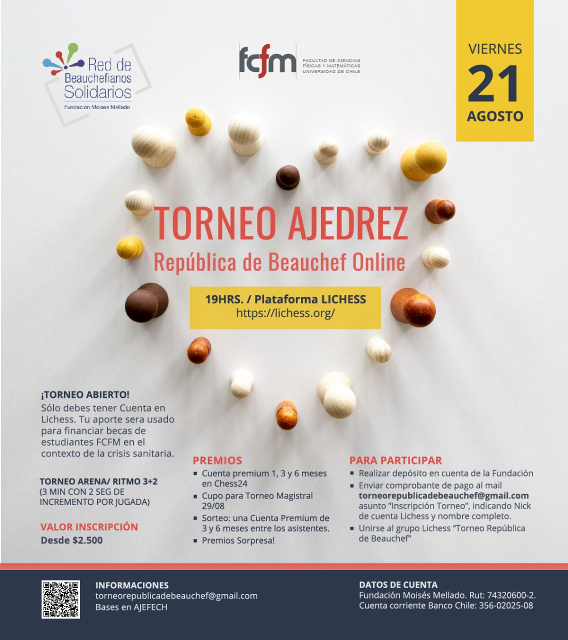 El día viernes 21 se realizara un torneo de ajedrez online, este posee un valor de inscripción de 2500 pesos. En donde lo recaudado se va al fondo de donaciones por COVID que se esta levantando dentro de la facultad.