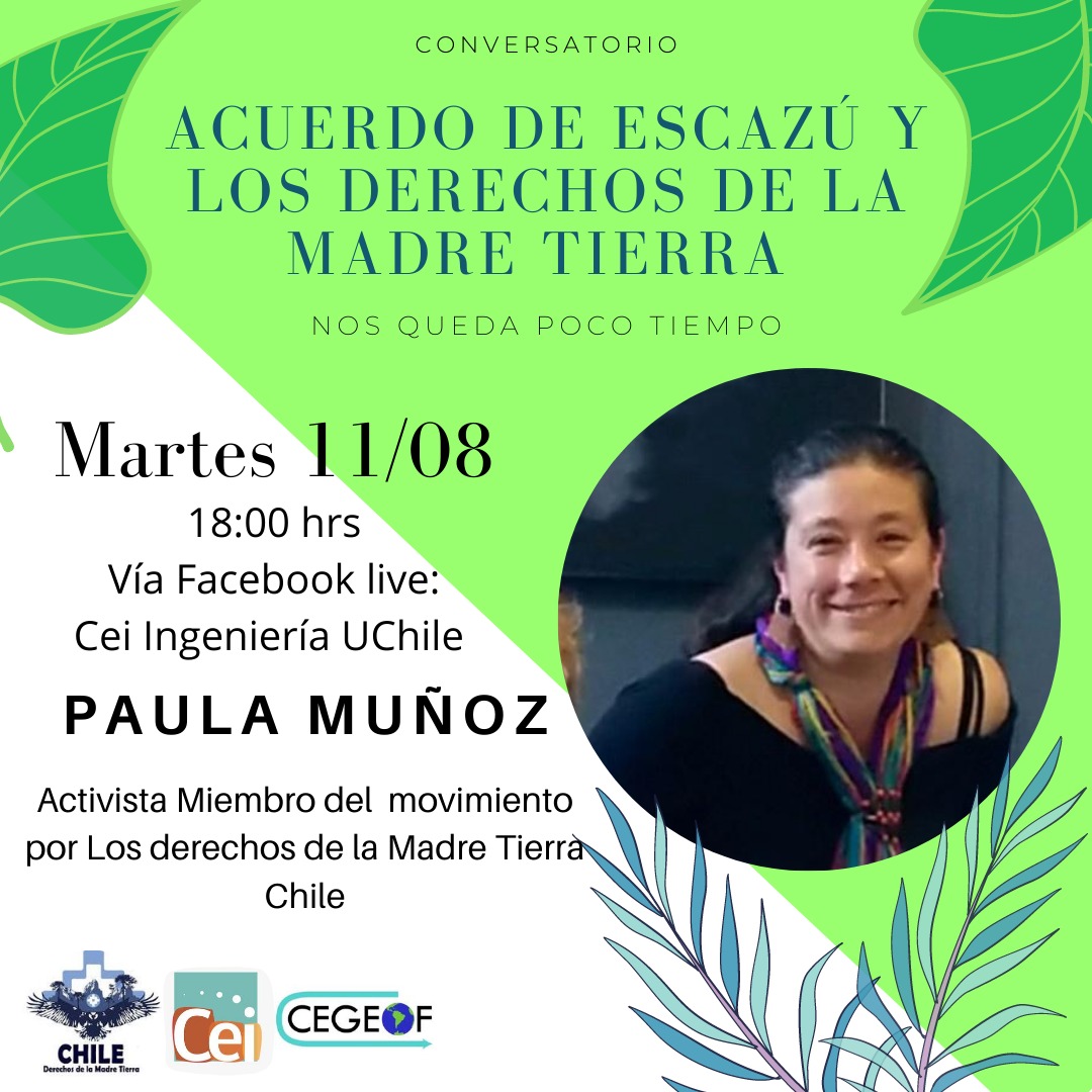 Segunda charla del ciclo de sobre el #AcuerdoDeEscazú donde tendremos el agrado de contar con Paula Muñoz, parte del Movimiento por los Derechos de la Madre Tierra 🌱🌍