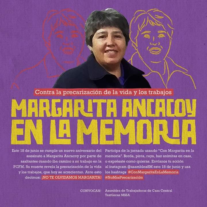 Les invitamos a sumarse a esta convocatoria compartiendo cualquier forma de expresión para recordarla. Recuerden los hashtags #ConMargaritaEnLaMemoria #NoMásPrecarización .
