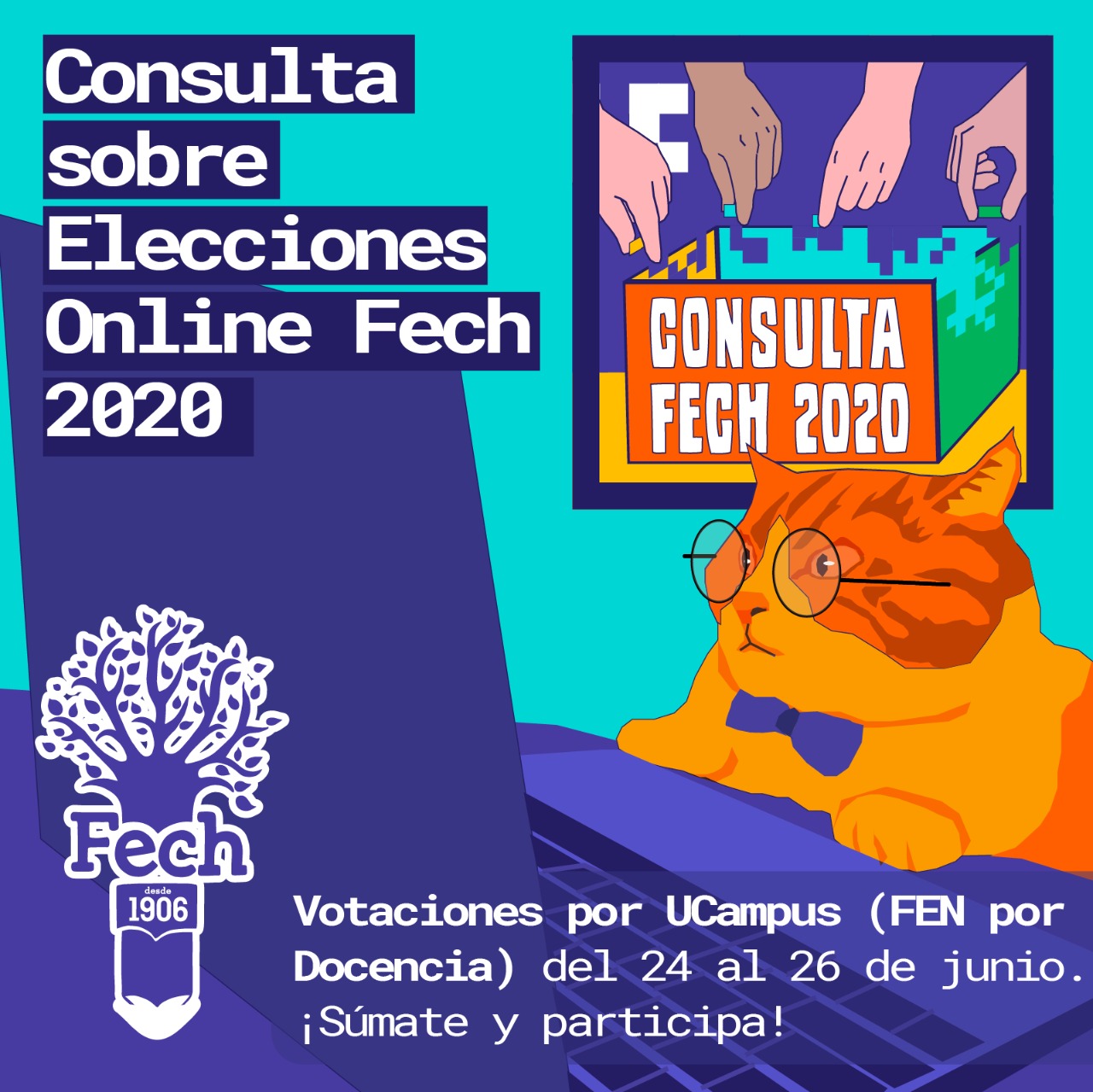 Además a toda la comunidad les queremos recordar que hasta hoy son las votaciones de la Consulta sobre Elecciones FECH 2020, no olviden participar en la convocatoria.