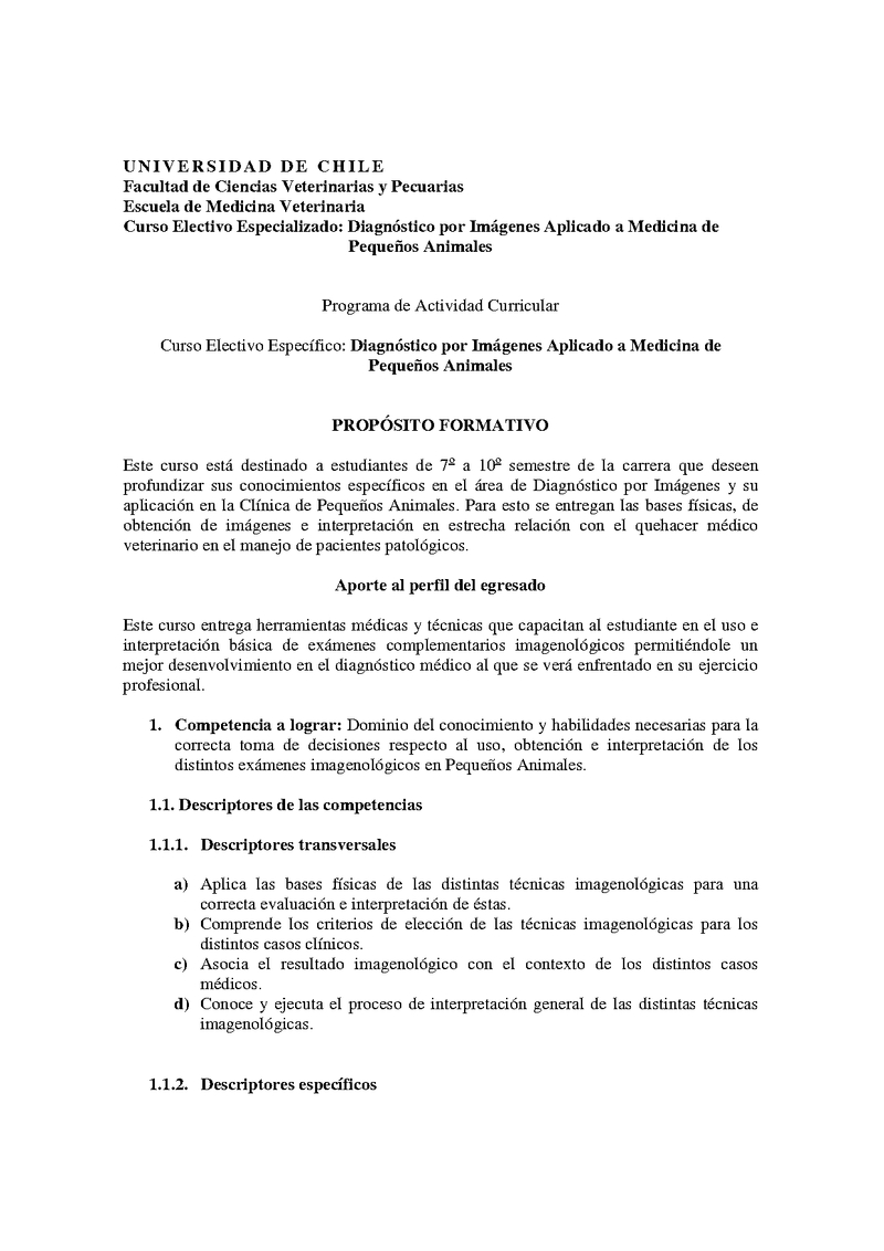 CC139-1 Diagnóstico por Imágenes Aplicado a Medicina de Pequeños Animales 2020, Primer Semestre
