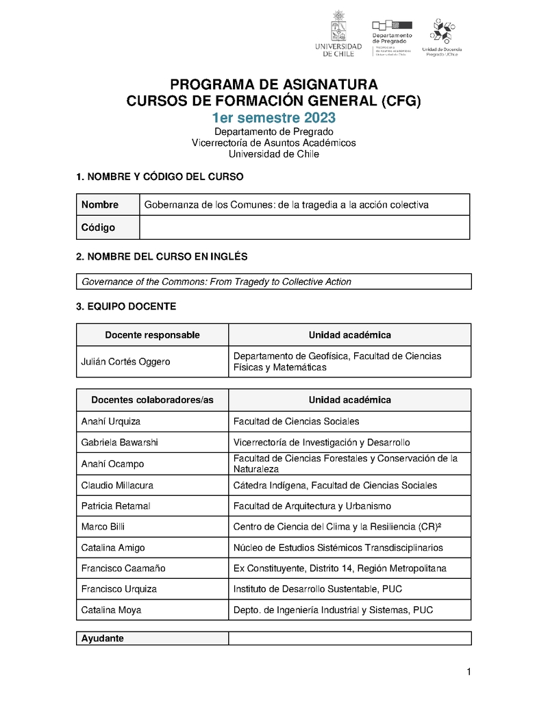 VA-01-0327-105-1 Gobernanza de los Comunes: de la Tragedia a la Acción Colectiva 2023, Primer Semestre