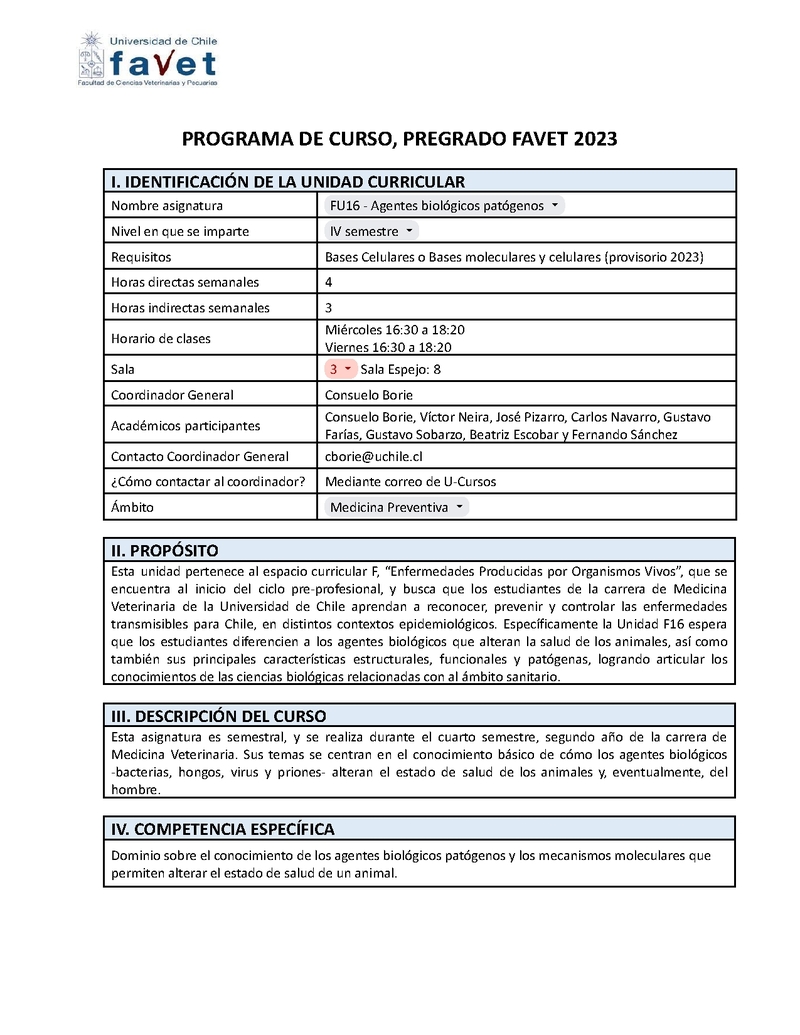 Descripción Syllabus año 2023, Unidad F16 "Agentes Biológicos Patógenos