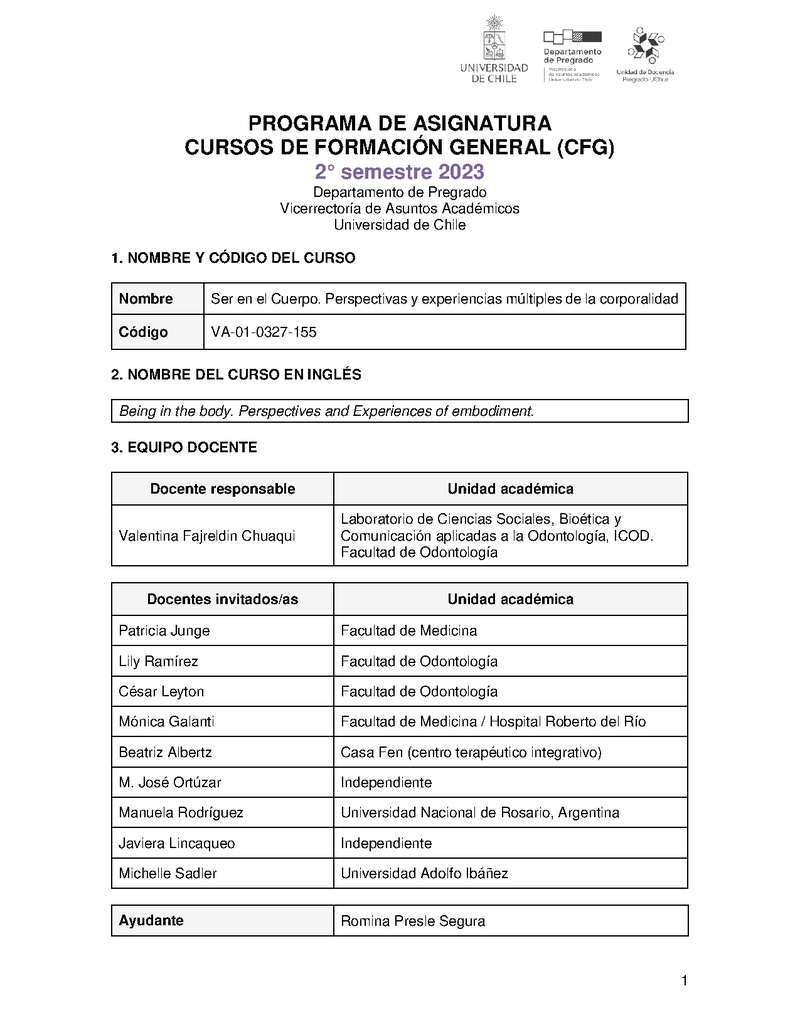 VA-01-0327-155-1 Ser en el Cuerpo. Perspectivas y experiencias múltiples de la corporalidad 2023, Segundo Semestre