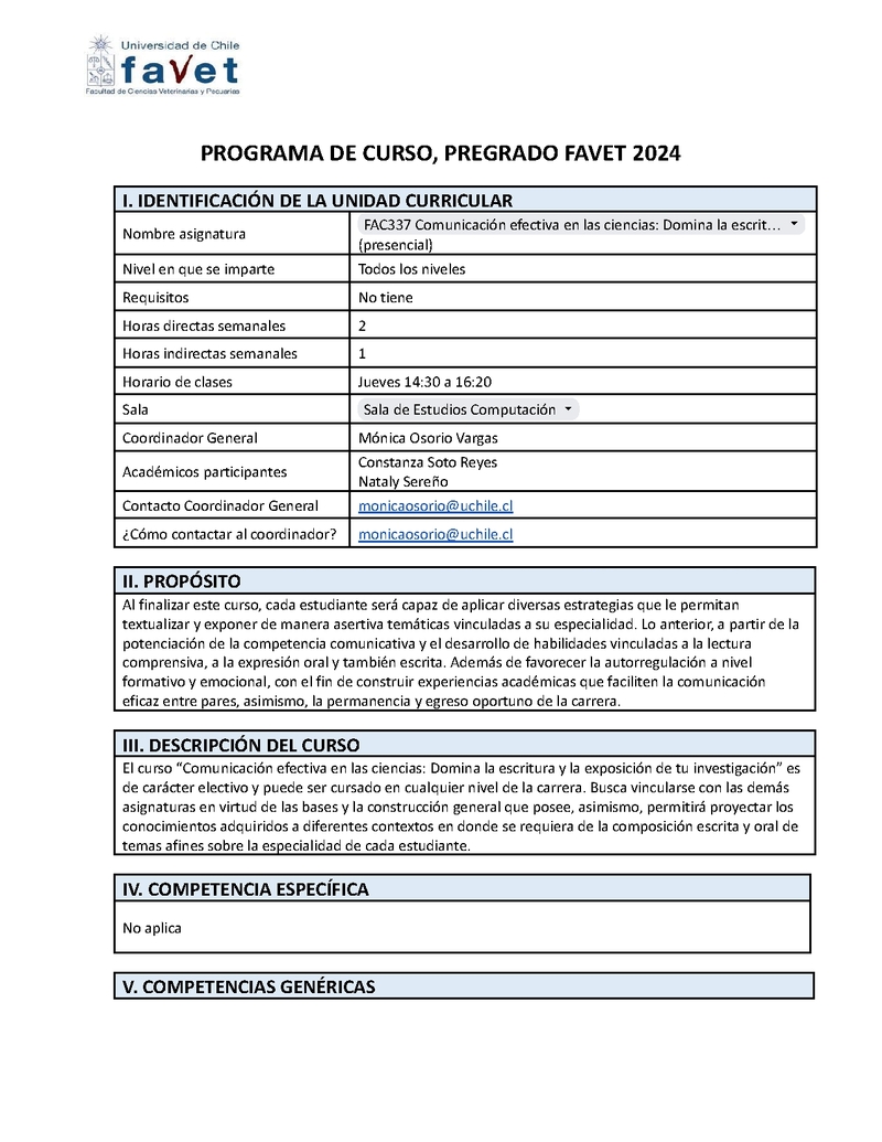 FAC337-1 Comunicación efectiva en las ciencias: Domina la escritura y la exposición de tu investigación 2024, Segundo Semestre